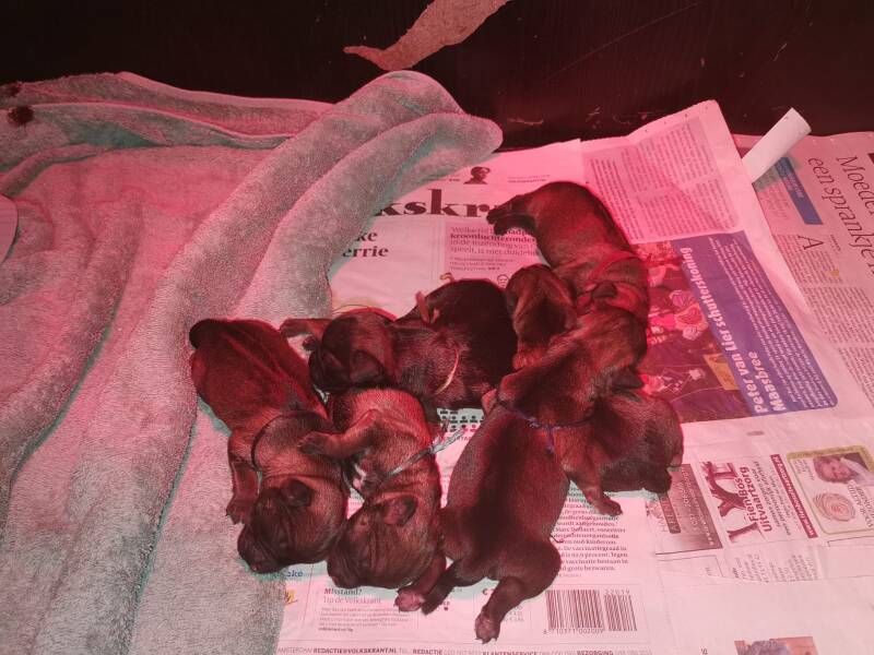Hoera, vannacht is Mila bevallen van 6 pups, 5 reutjes en 1 teefje.