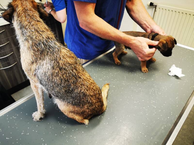 De afgelopen dagen zijn we heel druk geweest met de kleine friemels. Vorige week zijn we met alle pups naar de dierenarts gegaan. Ze zijn allemaal gezond verklaard! Dit was meteen de allereerste keer in de auto.