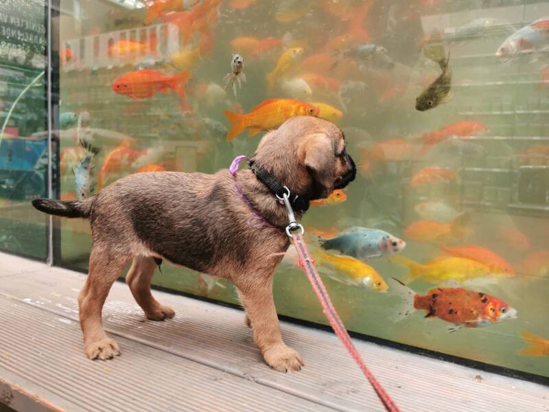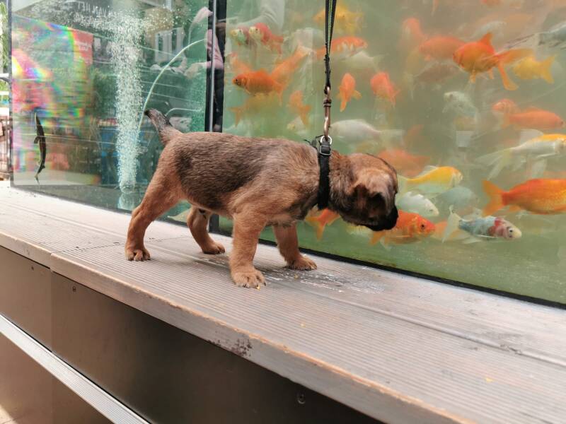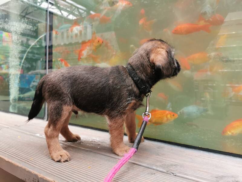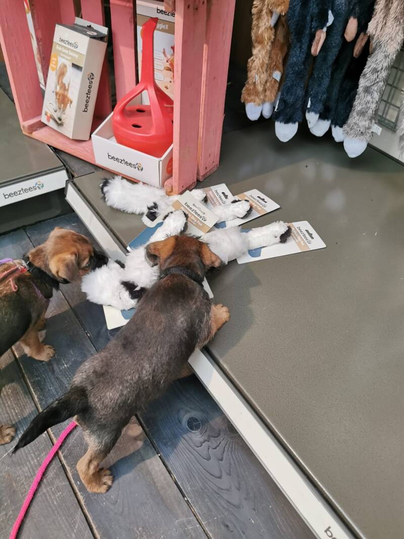 Een paar dagen later zijn we met vier van de zes pups naar het tuincentrum gegaan. Twee pups blijven namelijk iets langer hier in verband met de vakantie. In het begin vonden ze het een beetje spannend maar na een tijdje was daar niks meer van te merken.