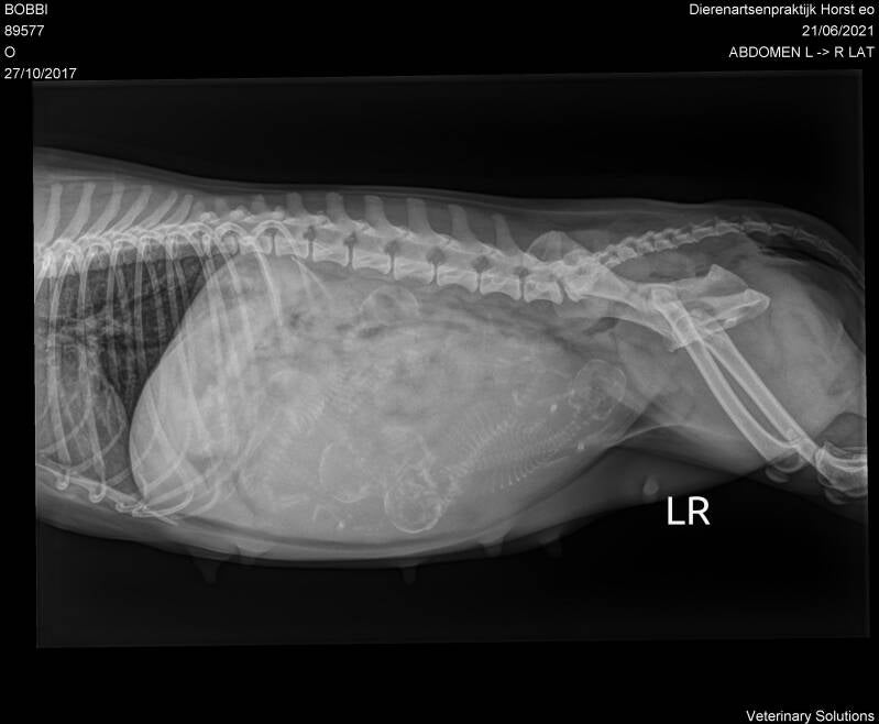 In de ochtend heb ik een röntgenfoto van Bobbie laten maken en toen kreeg ik het heugelijke nieuws dat Bob zwanger is van 5 pups! Mijn poule uitslag klopte dus niet, want ik dacht dat er 4 pups in haar buikje zouden zitten.