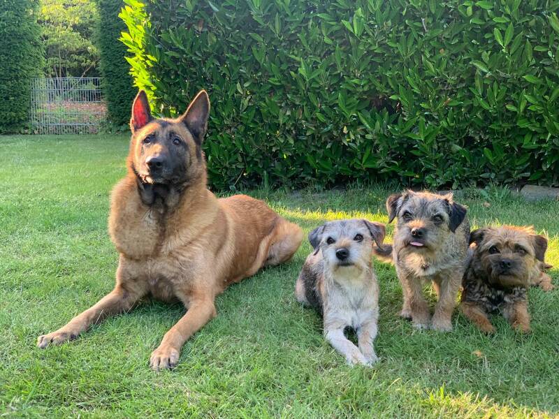 De roedel voor de laatste keer op de foto: Easy, Mila, Bobbie en Bowie.