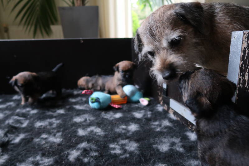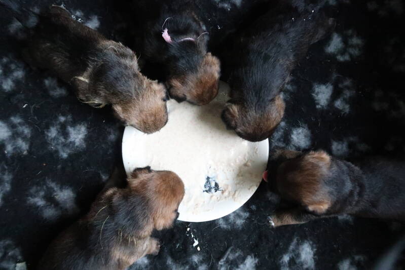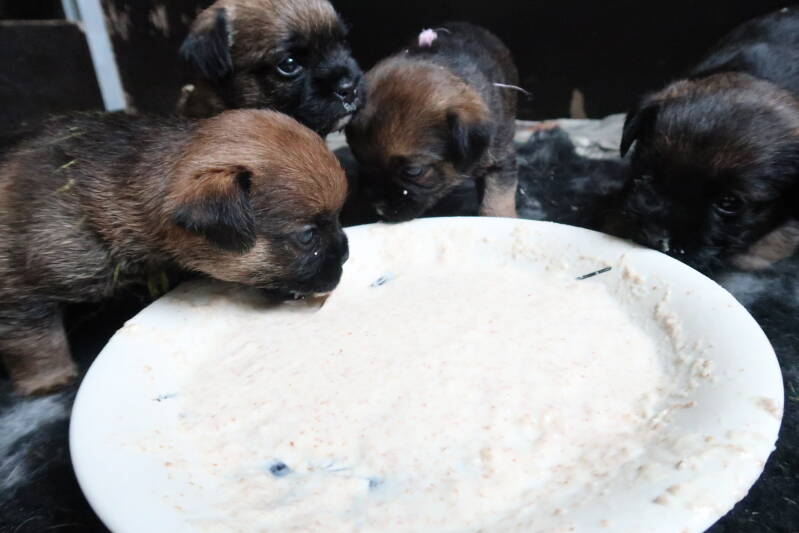De pups zijn alweer 3 weken oud. Sinds deze week krijgen de kleintjes Brinta.